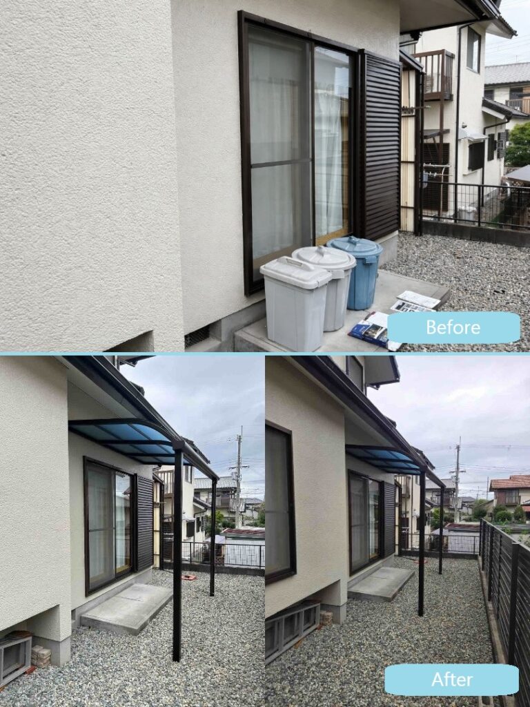 東の日がよく入り、眩しいので、テラス屋根を付けてほしいとご依頼がありました。